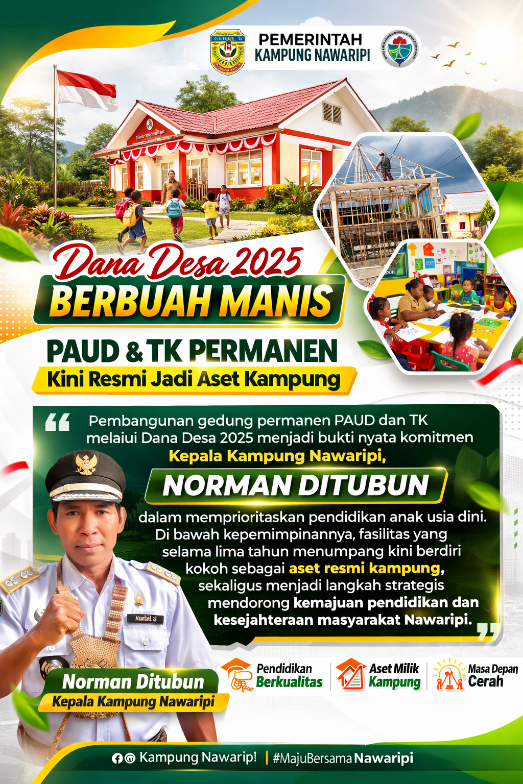 “Norman Ditubun Menanam Masa Depan: Dana Desa 2025 Berbuah Gedung PAUD dan TK Permanen di Nawaripi” Read More »