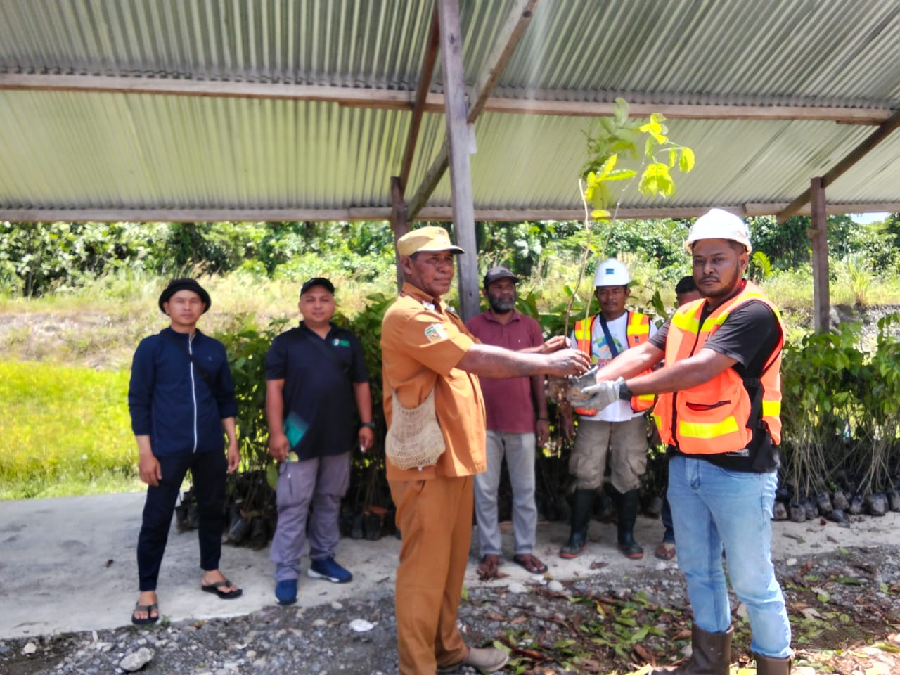 Penyerahan 2000 pohon dari staf Enviromental kepada Kepala Kampung Nawaripi, Norman Ditubun di lokasi wisata Paieve Mile 21, pada Selasa (4/11/2025).
