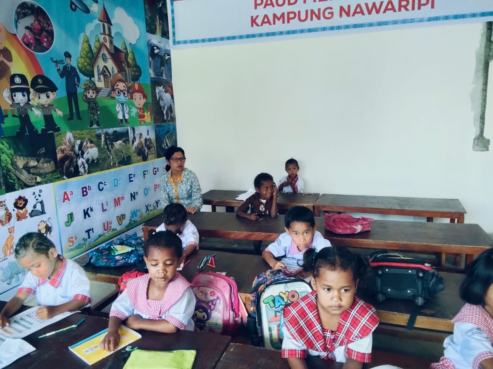 Timika  | Terhitung sejak Senin (13/4/2026) TK/PAUD Kampung Nawaripi mulai belajar mengajar di gedung baru yang dibangun Pemerintah Kampung Nawaripi pada tahun 2025 lalu yang menggunakan dana desa (DD).