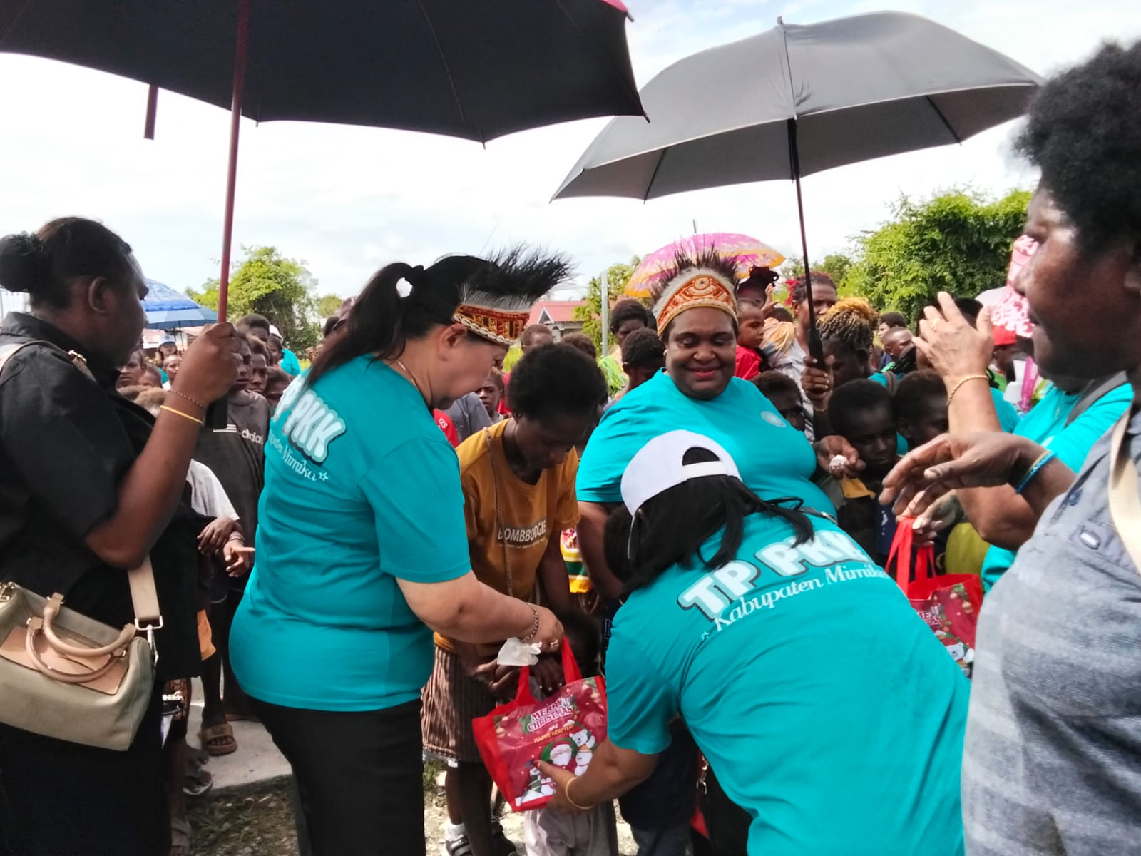 Timika – Pengurus PKK Kabupaten Mimika berkunjung dan berbagi kasih dengan warga dan siswa-siswi sekolah di Kampung Nawaripi, Selasa (17/12/2025). Kunjungan dan berbagi kasih ini menyambut hari Ibu yang jatuh pada 22 Desember mendatang.