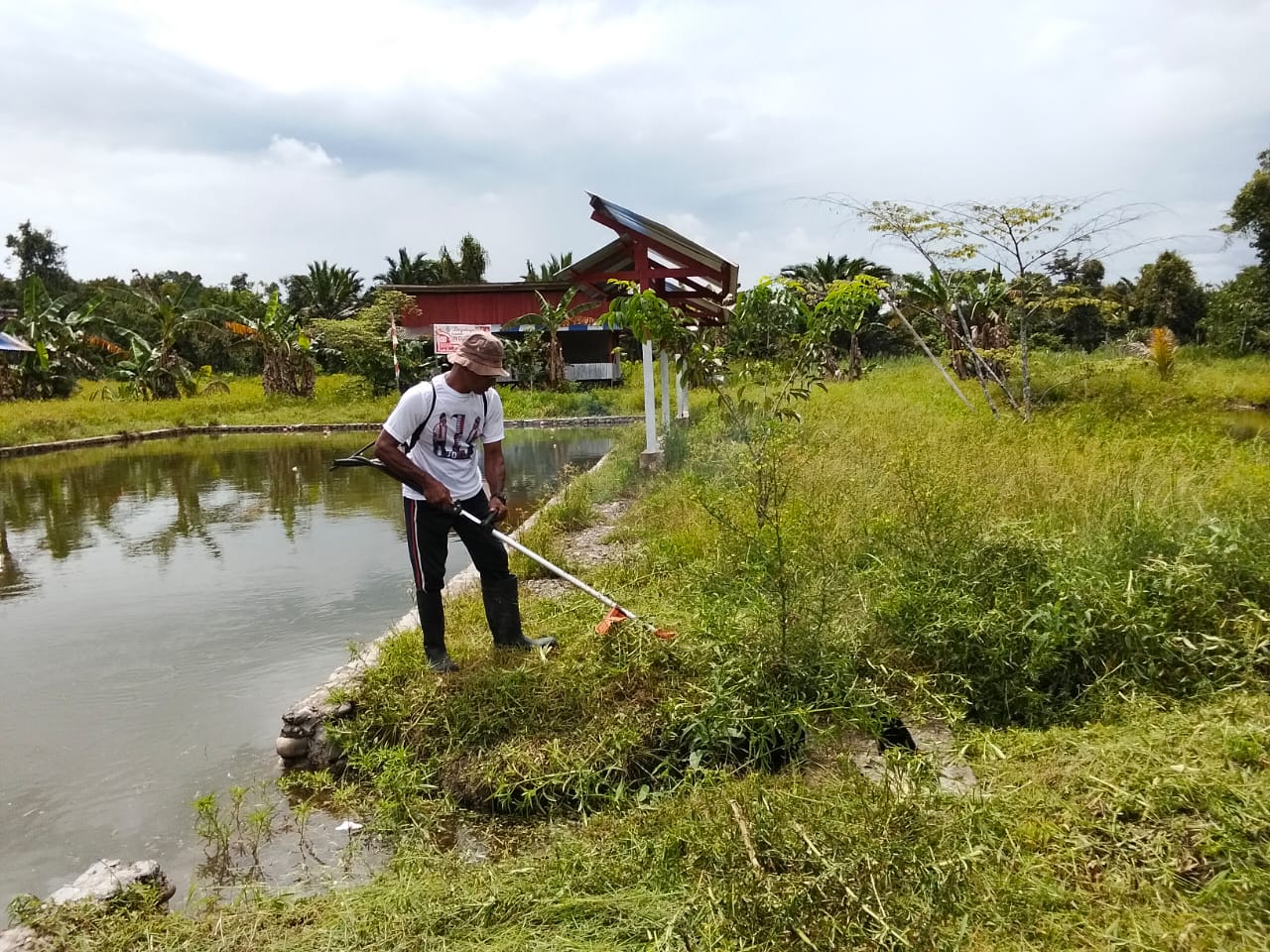 Jelang Lomba Mancing Pengurus BUMDes Lakukan Pembersihan Sekitar Kolam Pemancingan