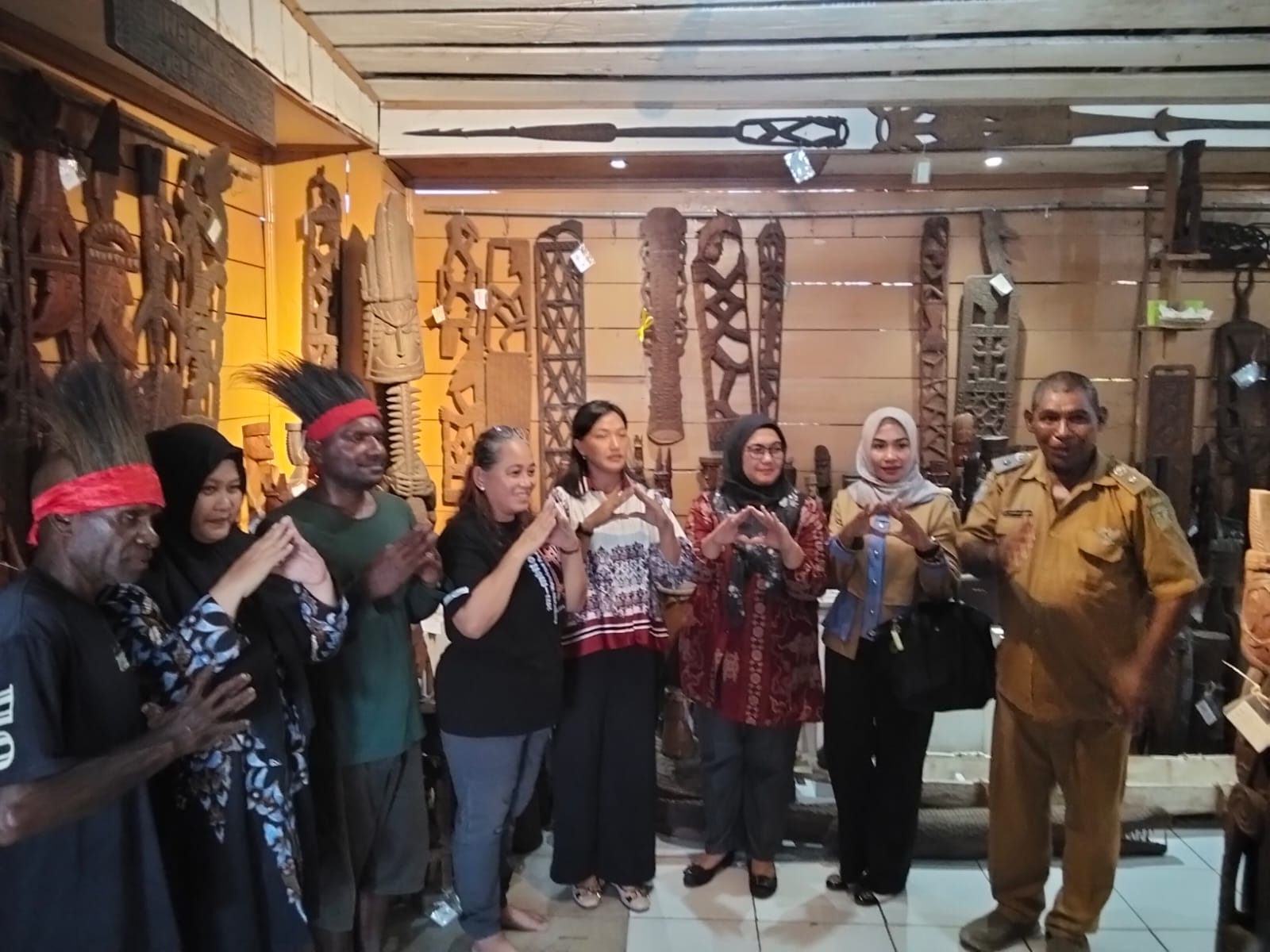 ‘ Ibu nomor 1 Korem 173 merasa senang melihat ukiran ukiran patung hasil tangan tangan seni Suku Komoro dan suku Asmat,” kata Luluk.